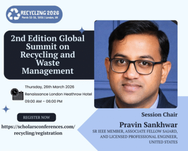 London, UK – April 01, 2026: The Global Summit on Recycling and Waste Management (Recycling 2026), hosted by Scholars Conferences,…